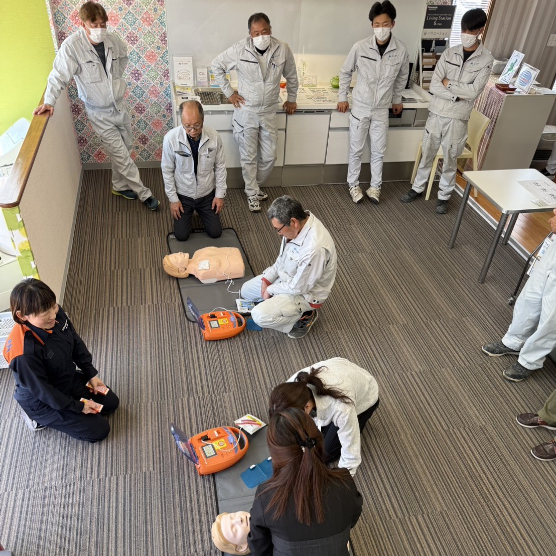 講習では、心肺蘇生法(CPR)やAEDの使い方を