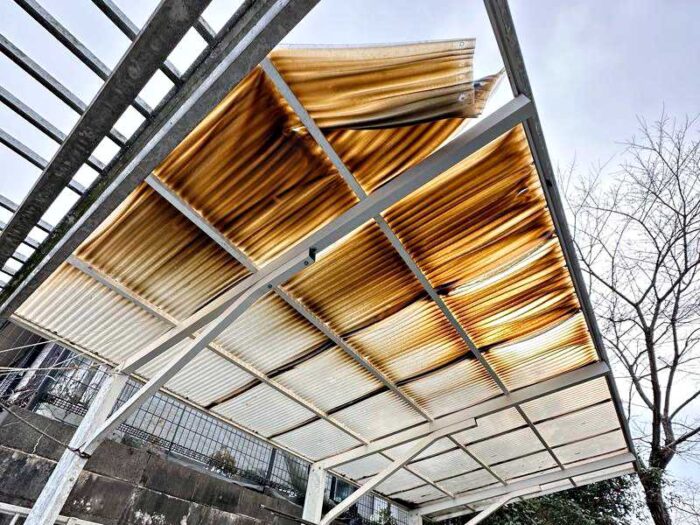 塩ビ製のカーポートの波板が紫外線や熱により変色変形していたため