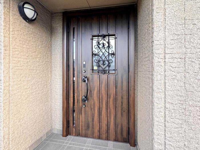 玄関扉をクラシカルな曲線が印象的な扉に取り替えました。