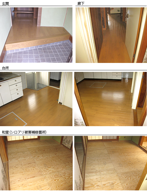 和室3室は、「防蟻処理」を行い「シロアリ被害箇所」を補修しています